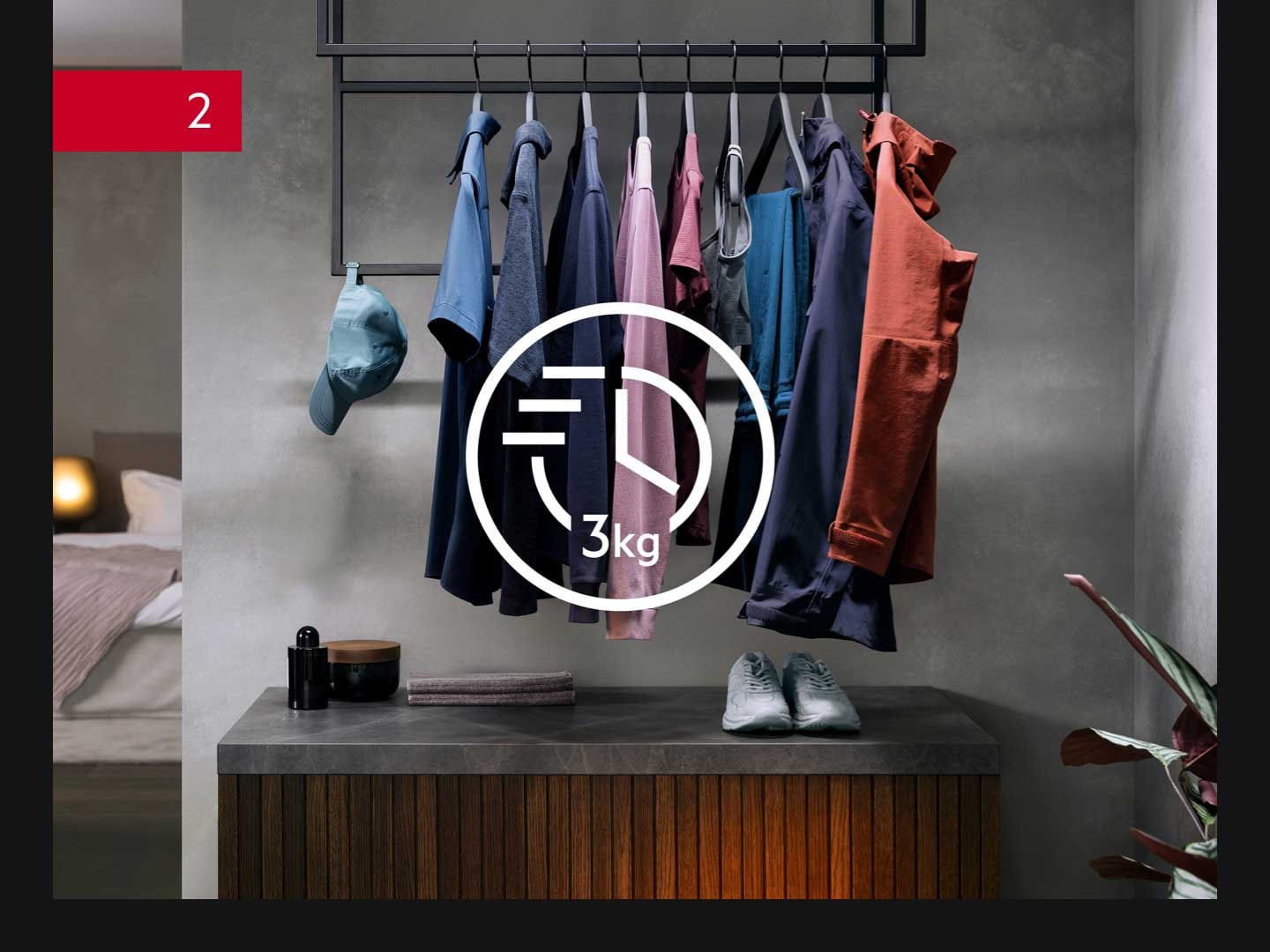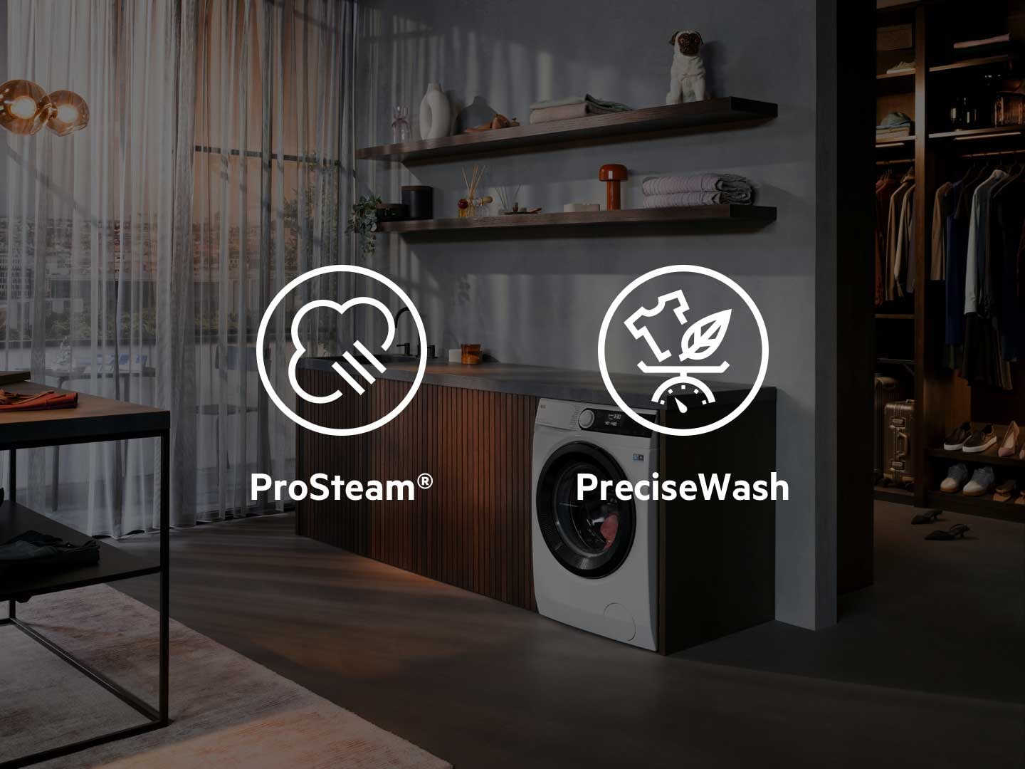 • PROSTEAM® - Nøytraliserer uønsket lukt og frisker opp klærne dine.