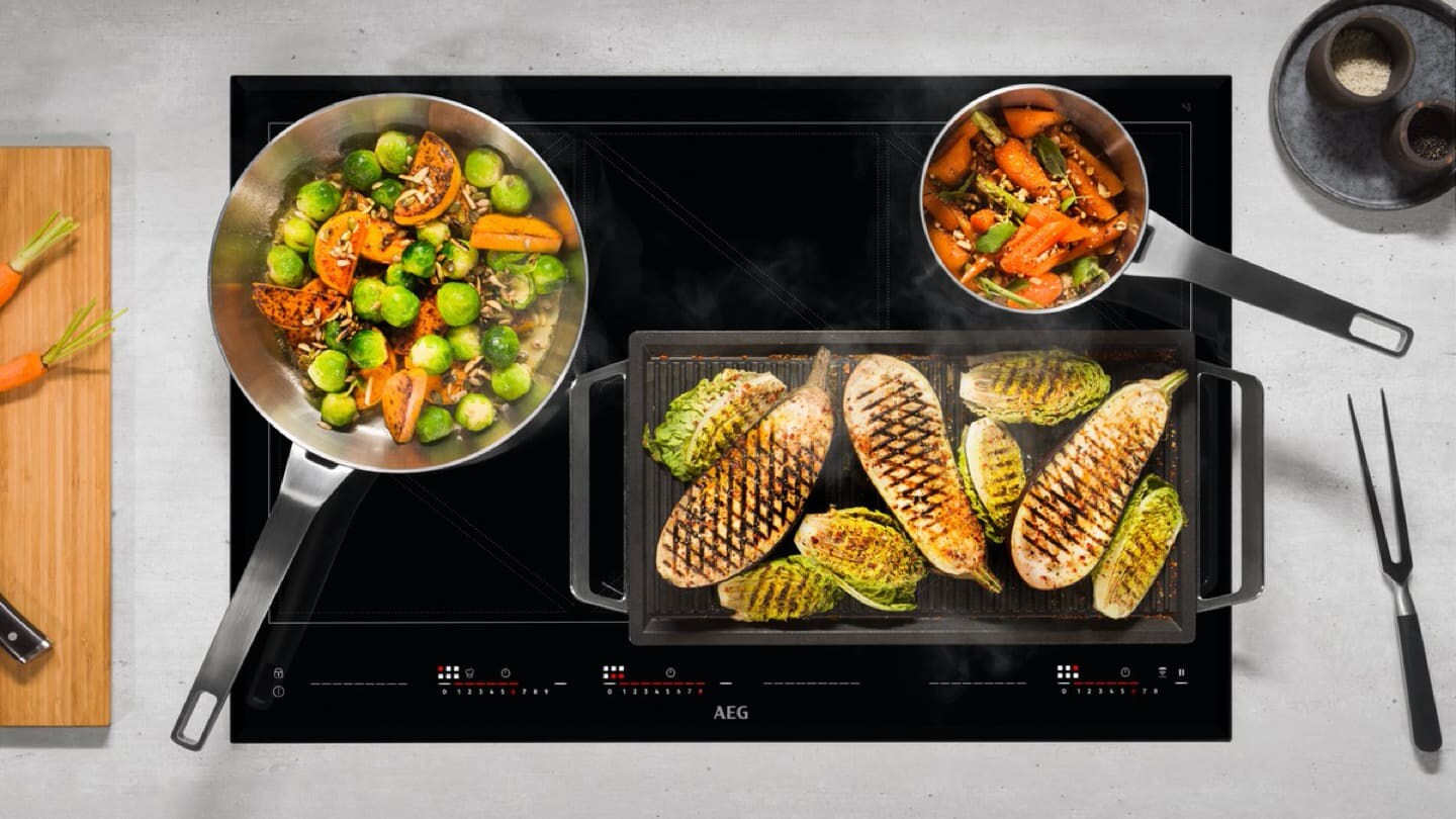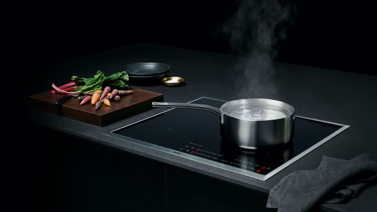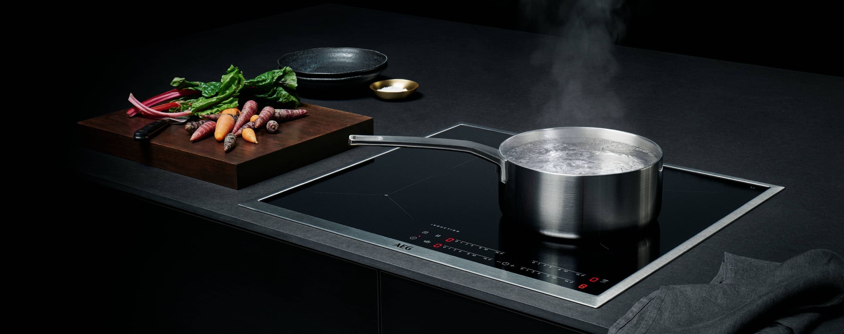Induksjonsplatetopper reagerer raskt og sikkert. Varmen fordeles jevnt, og platetoppen avkjøles så fort du er ferdig med matlagingen.