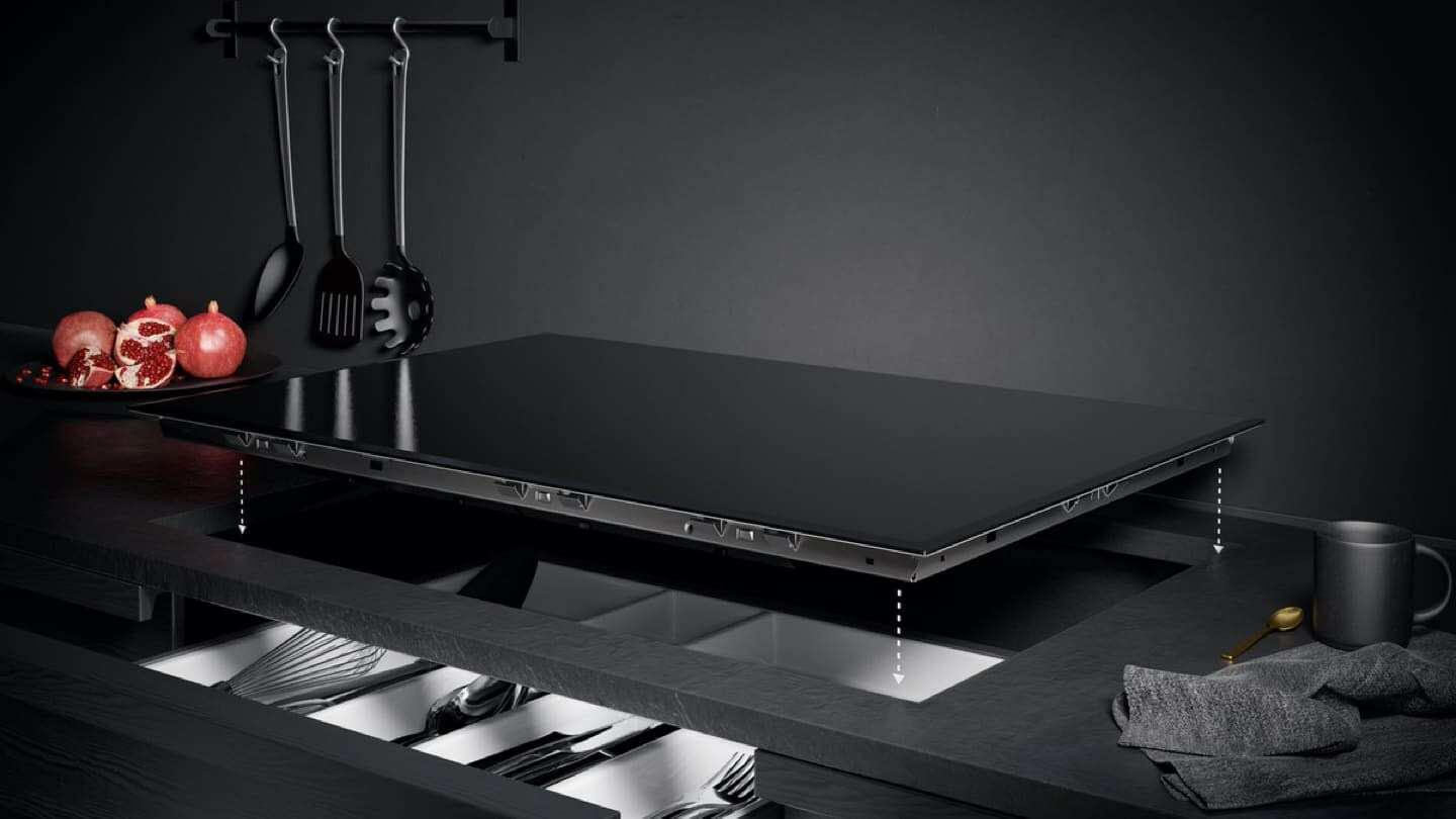 Det er veldig enkelt å bytte ut en tradisjonell platetopp med en induksjonstopp. Ettersom luften sirkulerer under koketoppen, er det verken nødvendig med ventilasjon foran eller bak. Det betyr at du slipper å gjøre om benkeplaten * og i stedet kan ha en nyttig skuff eller innbyggingsovn rett under platetoppen.
