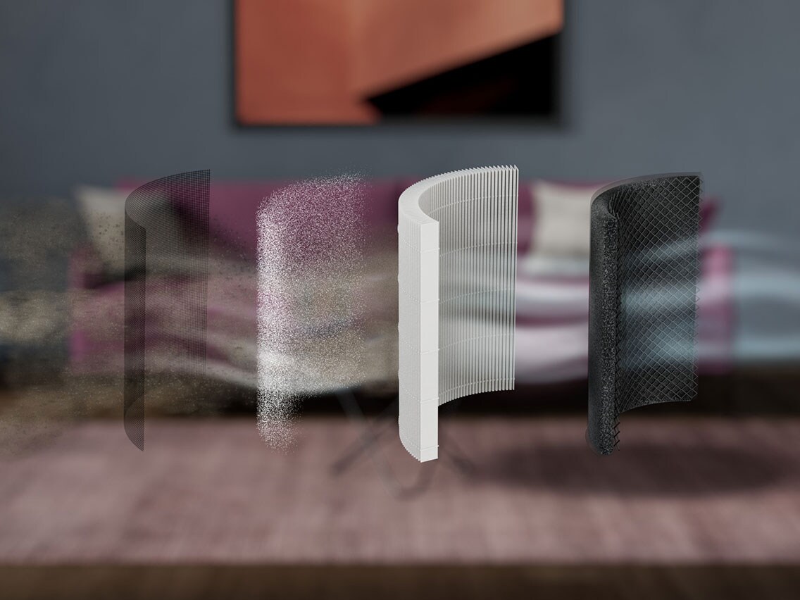 En luftrenser drar aktivt inn luften fra rommet og fanger opp skadelige, mikroskopiske partikler som allergener, pollen, fint støv og lukt: